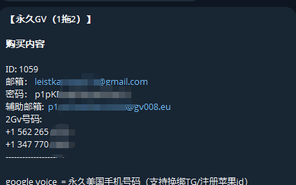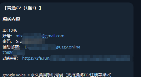 发货时候也描述了账号下的 美国号码 +1 开头,复制就可以去注册苹果id/换绑TG号...等用途了